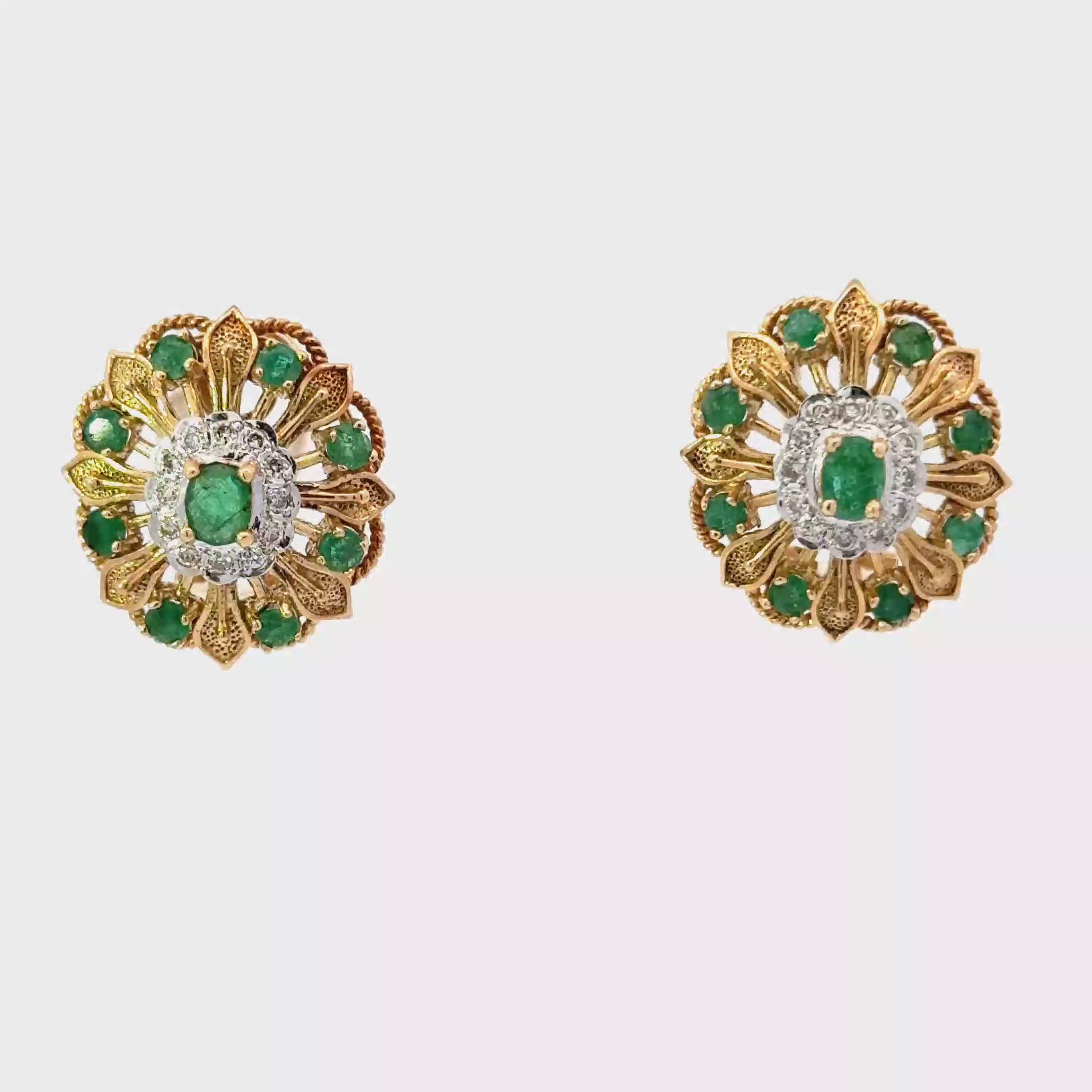 14 KARAT GOLD EMERALD AND DIAMOND EARRINGS