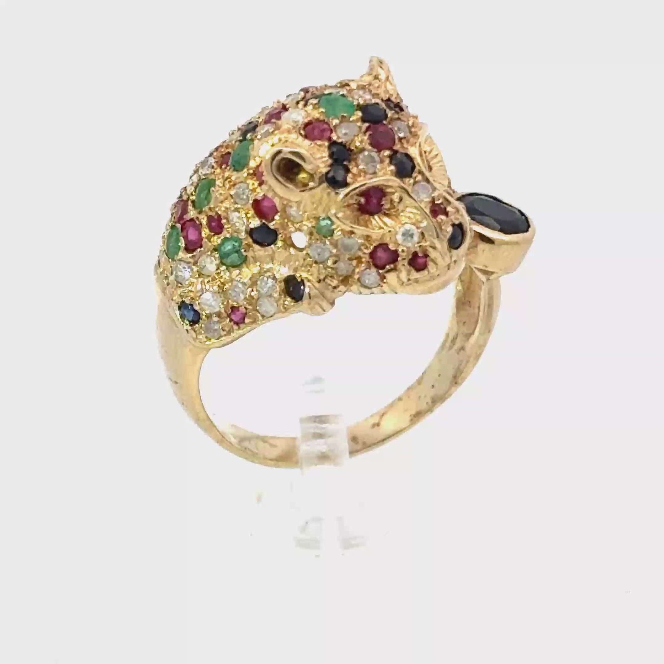14 KARAT PANTHER MULTI-GEM COCKTAIL RING