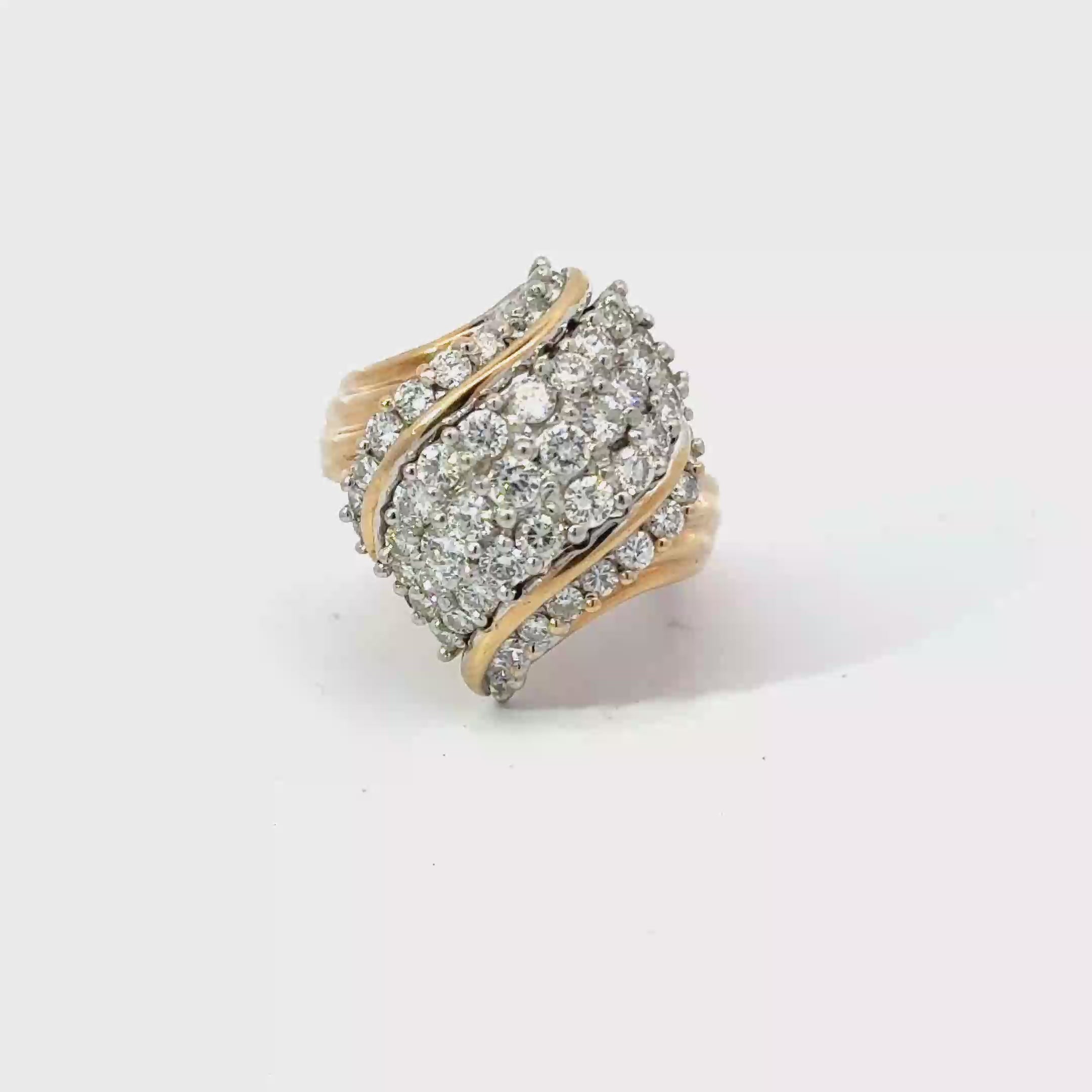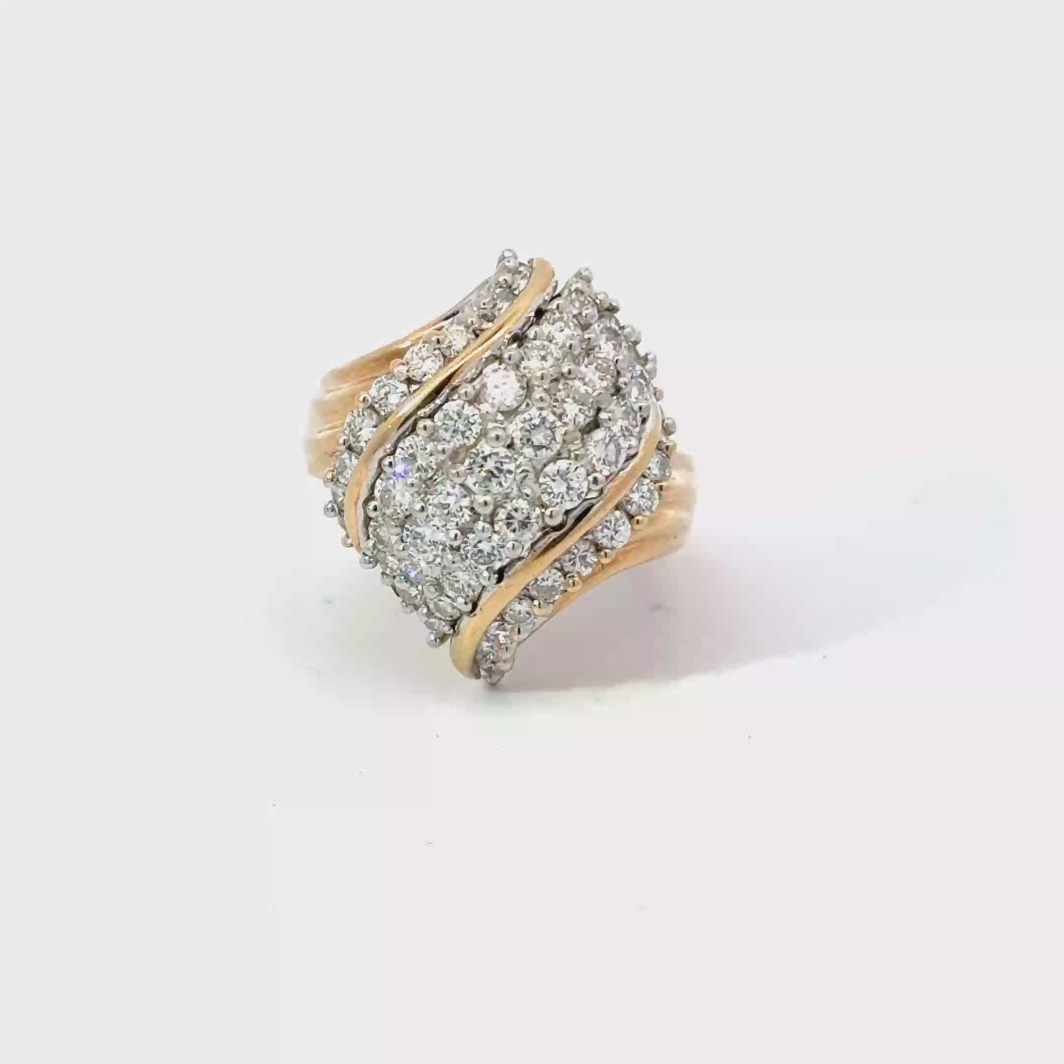 Embrace enduring elegance with this striking vintage diamond 14 karat yellow gold ring, meticulously crafted into a captivating domed wave design. The focal point is an array of round brilliant cut diamonds, exuding exceptional sparkle. This ring seamlessly blends classic charm with a bold statement, making it a treasured addition to any jewelry collection.