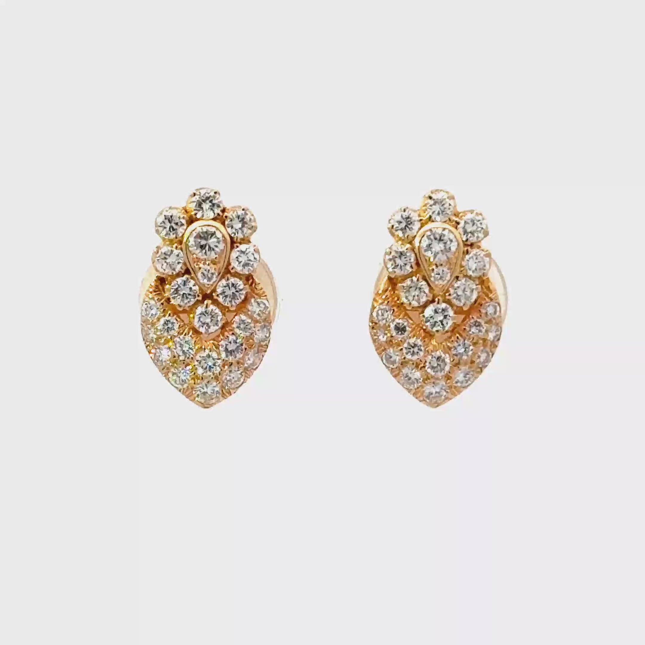 Exquisite stud earrings crafted in 18 karat yellow gold, designed to capture timeless elegance. Each earring showcases a cluster of round brilliant cut diamonds, meticulously set to maximize their sparkle. A stunning adornment that will add a touch of luxury to any ensemble.