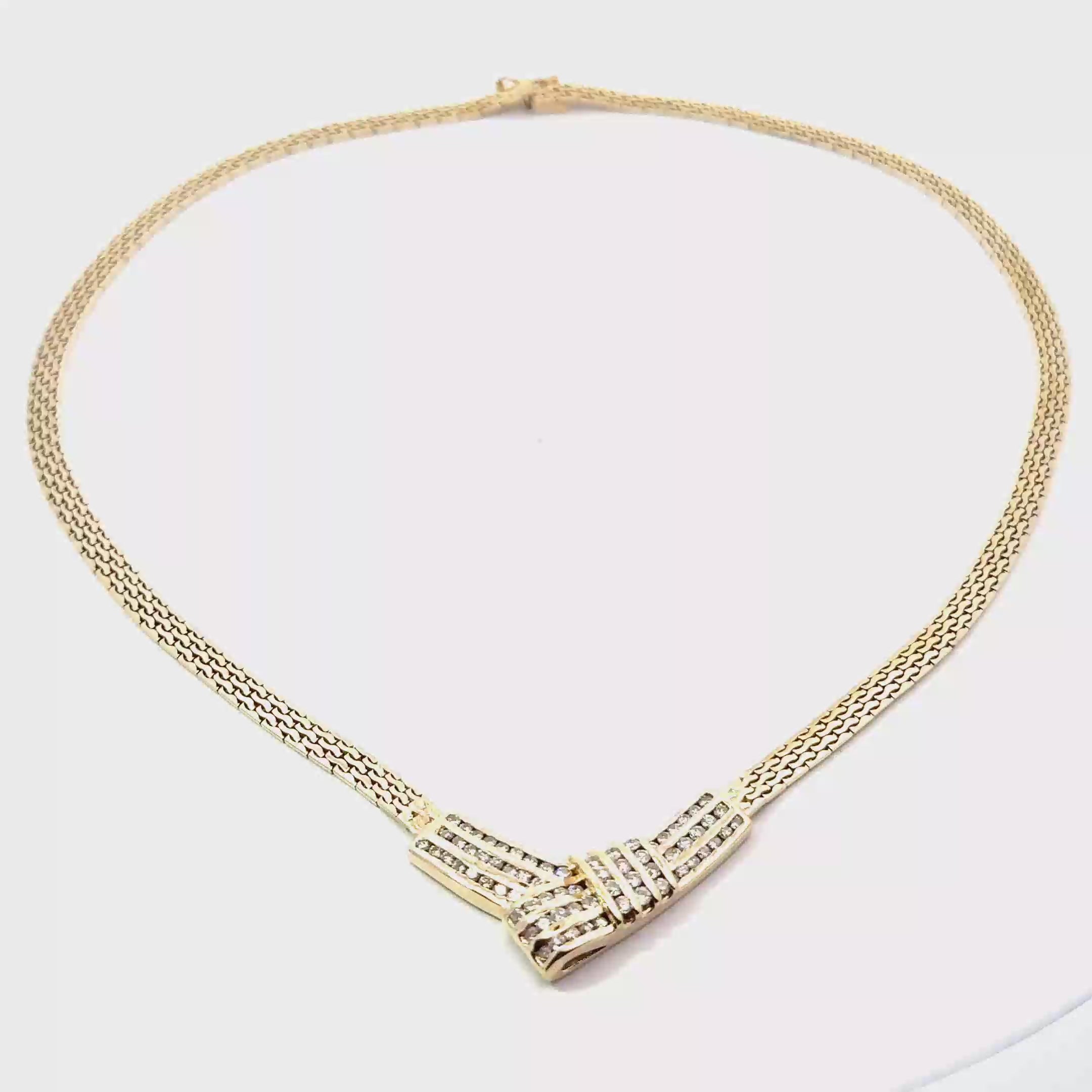 Elevate your style with this exquisite estate Italian diamond necklace, crafted in radiant yellow gold. The design showcases a sleek and sophisticated chain that beautifully complements the dazzling array of round cut diamonds. Perfect for adding a touch of luxury and sparkle to any ensemble, this necklace is a timeless piece that exudes elegance.